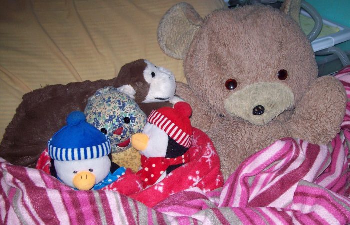 Here are the stuffed animals that sleep in Clint’s bed. Teddy Bear is getting pretty old.