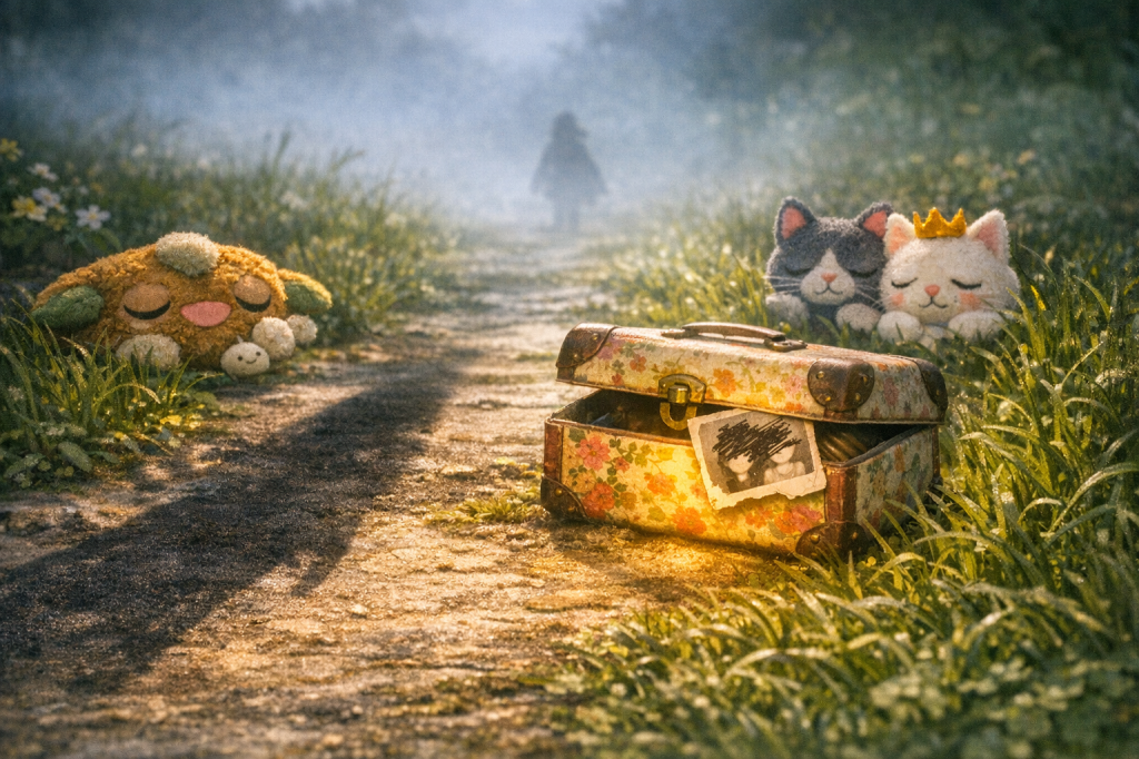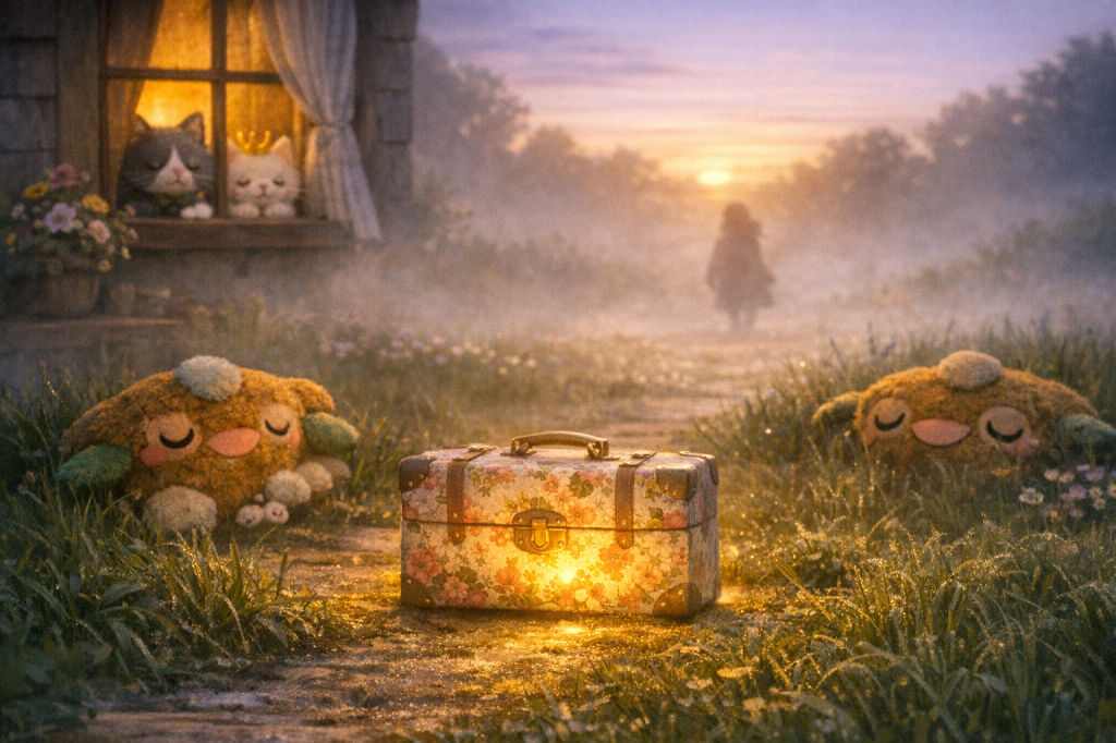 Marigold clicked open her suitcase. Inside were three velvet capes, a stack of sealed letters, a jar labeled For Emergencies Only, and a framed photo of someone whose face had been mysteriously scratched out.