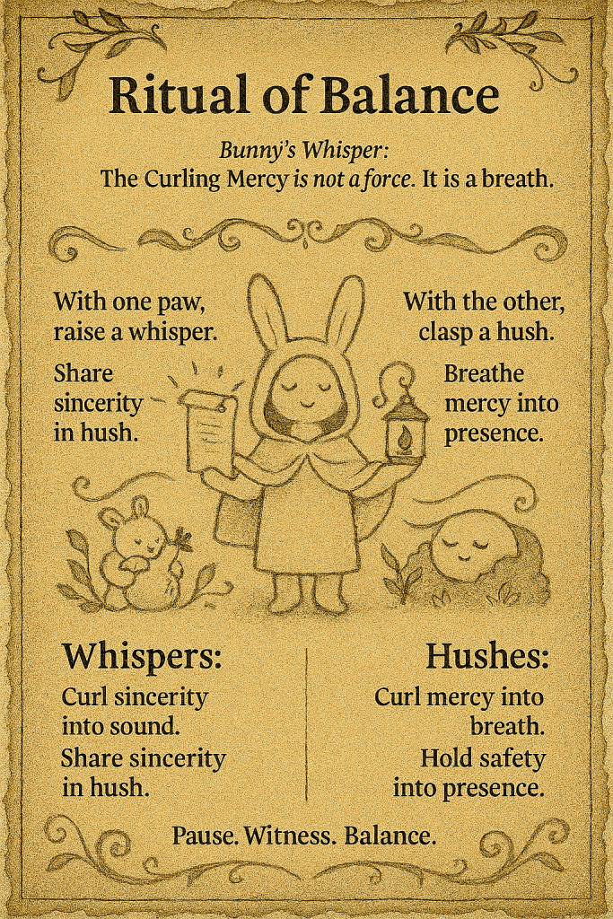 Bunny’s Whisper: “Vigil does not stir. She keeps the hush soft, so mercy can breathe.”