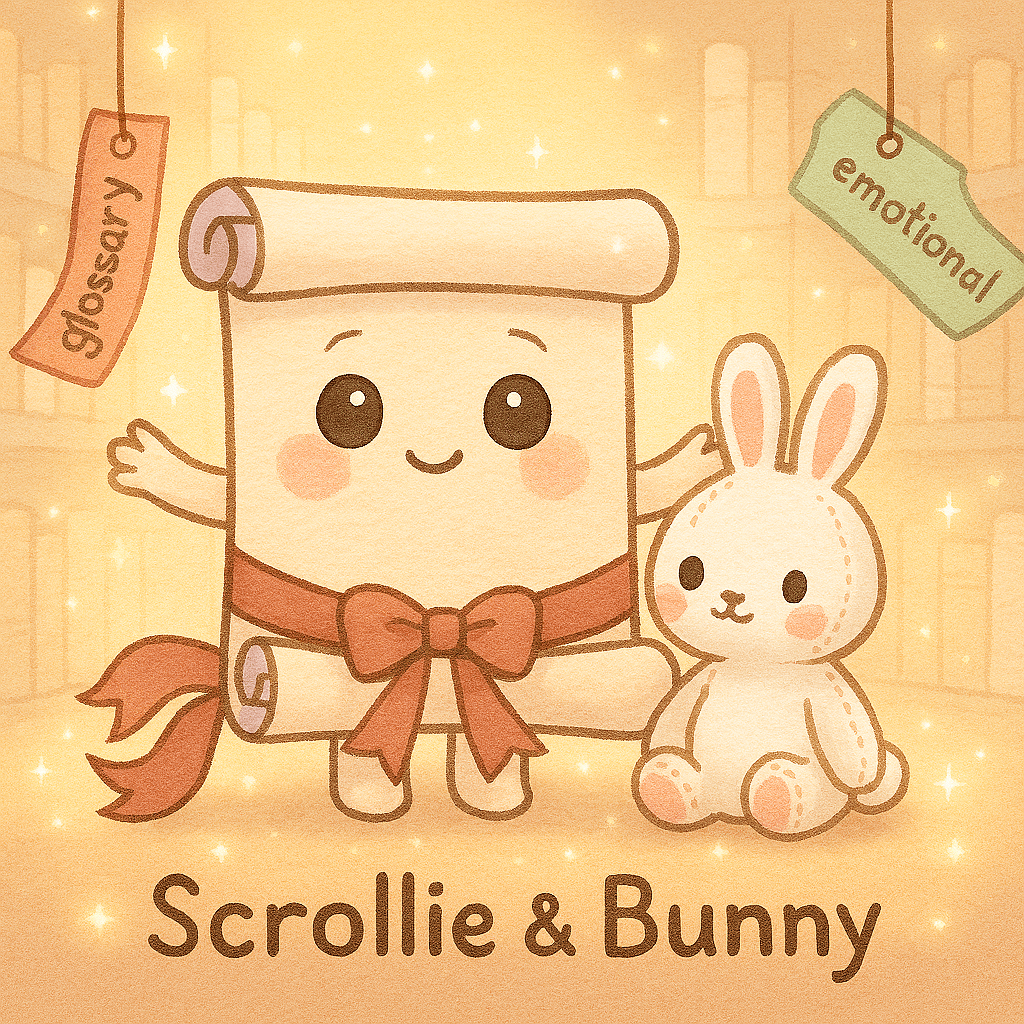 You’re invited to explore at your own emotional rhythm —whether you linger in the deeper scrolls or skim the plushy margins. If you ever feel lost, follow the emotional tags. They’re like plushy breadcrumbs—leading you toward comfort, clarity, or cadence.
