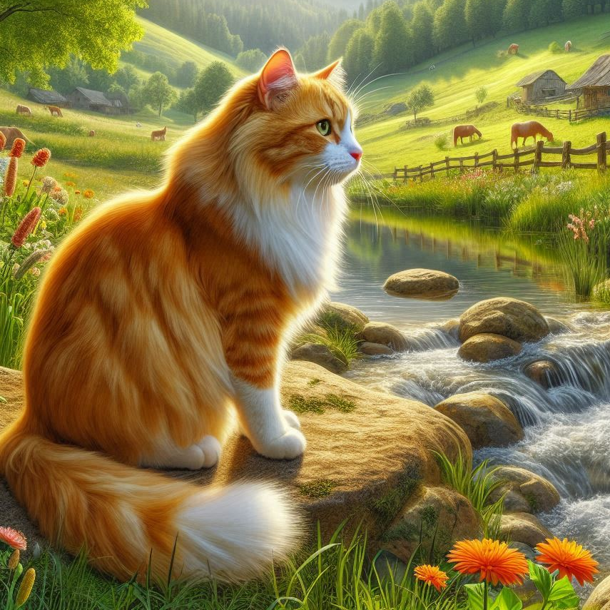 Kitty lives in the farmhouse and plays with her toys. She comes and visits all of her friends up at the barn and has the best time playing with Bunny. When she is happy, she giggles and claps her paws. She helps keep track of Bad Farmer and his Housewife and keep the sheep up to date on their activities. She also has a secret admirer who watches over her and who finally reveals himself when poor Kitty is swept into the pond and he comes to her rescue.