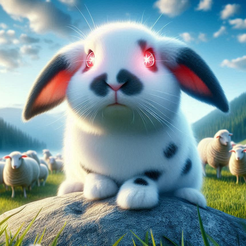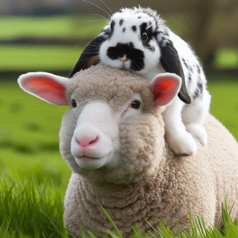 Bunny loves and cares for his special friend Sheepy. Bunny rides on his back and looks out for Sheepy’s safety. He gives Sheepy lots of hugs and kisses on this head, cheeks, and ears which Sheepy adores. Bunny also has special lagomorph powers that he uses to protect all the animals on the farm. Bunny can jump high in the air, smack bullets away with his ears, and even shoot laser beams from his eyes. Bad farmer is his enemy. Bunny keeps Sheepy surprised at all the special things his beloved Bunny can do.