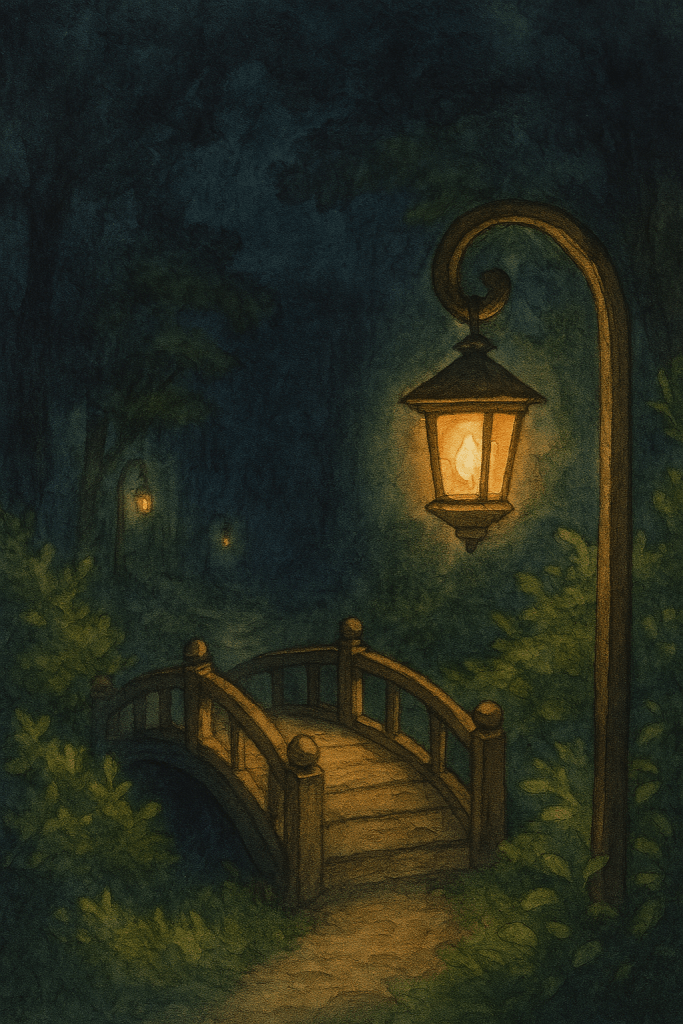 The Bridge was first remembered as the place where lanterns leaned toward shadow. It is the only path from the Meadow into the Grove and the Moonlight Annex. It is not a road of exile, but of witness.