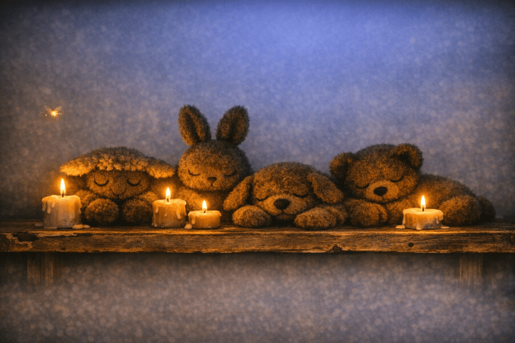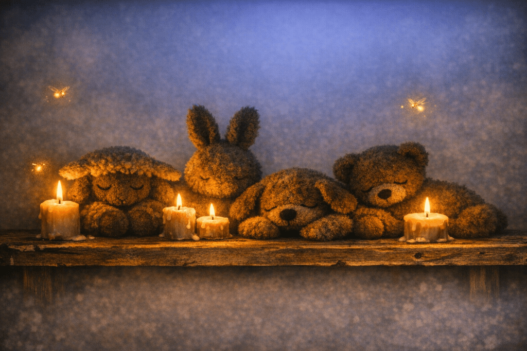 Journeys rest in hush and warmth. The Meadow keeps its second shelf, and plush voices lean in quiet and dream. Mercy curls in memory and continuation, and the mid‑journey hush rests in peace.