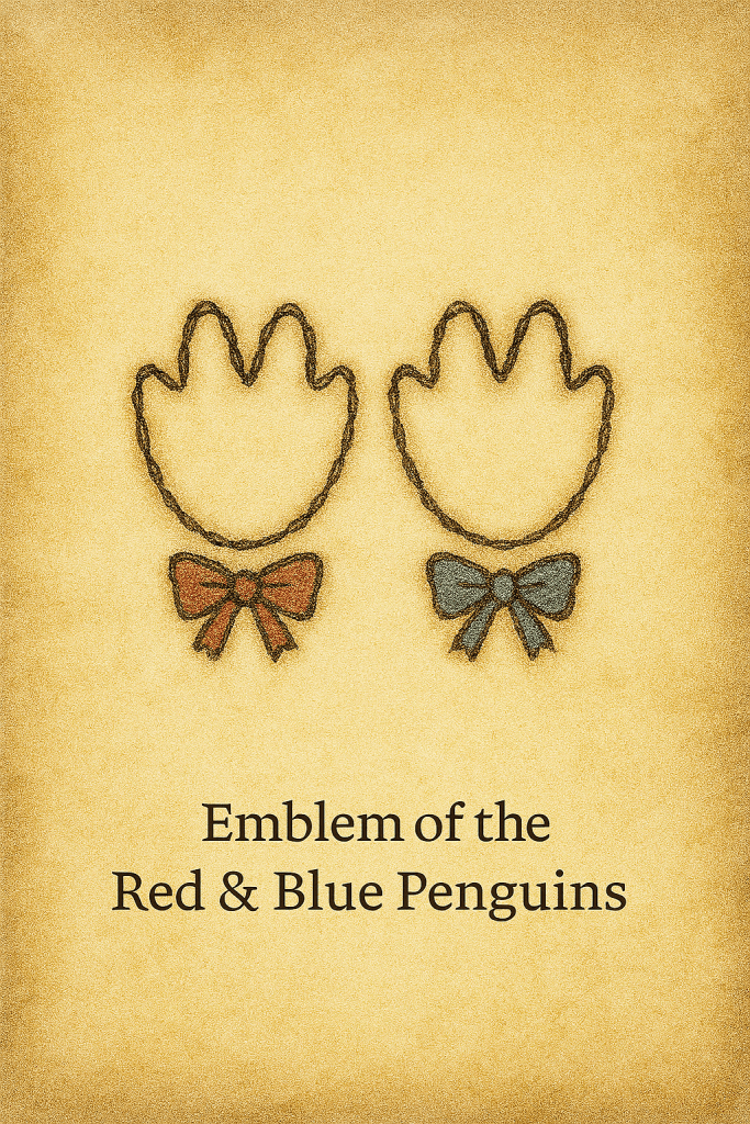 The Red and Blue Penguins are rarely seen apart, for their dignity is doubled in their waddling together. They embody a comic grace — solemn in posture yet playful in step — reminding the Meadow that joy often comes best in pairs. Their presence is a lantern of companionship, a mirrored rhythm of flippers and feet that dignifies laughter as ceremony.